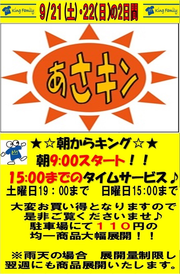 ★週末2日間限定 「あさキン」開催★外売場に110円均一商品大量投入!!
