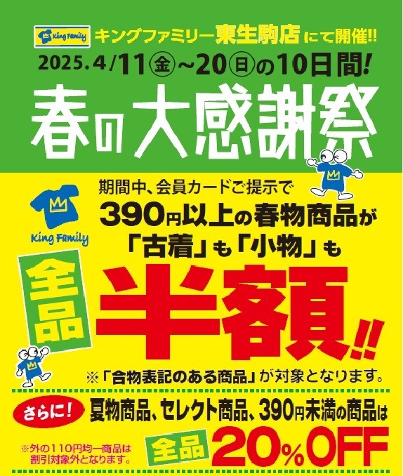 いつもキングファミリー東生駒店をご利用いただきまして誠にありがとうございます。