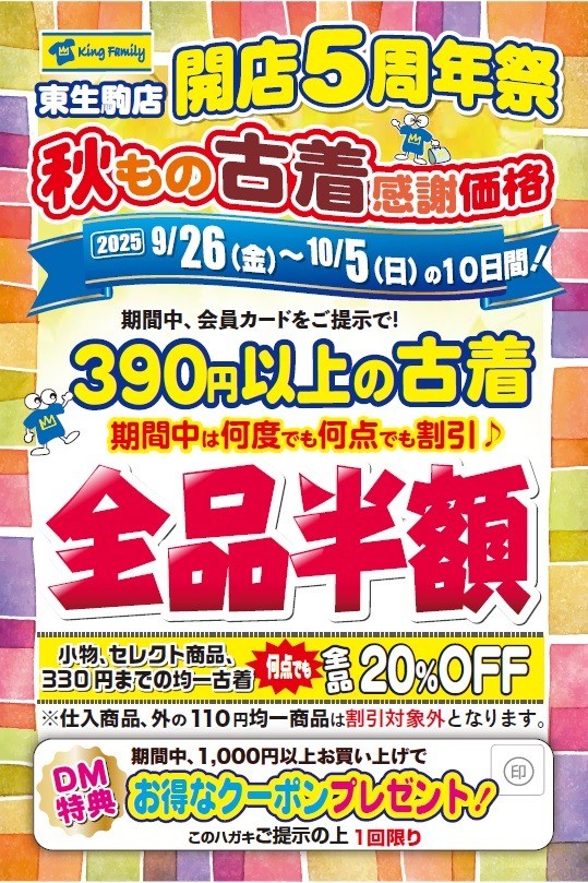 いつもキングファミリー東生駒店をご利用いただきまして誠にありがとうございます。