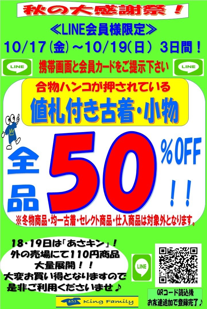 ★「秋の大感謝祭」開催★≪LINE会員様限定≫
