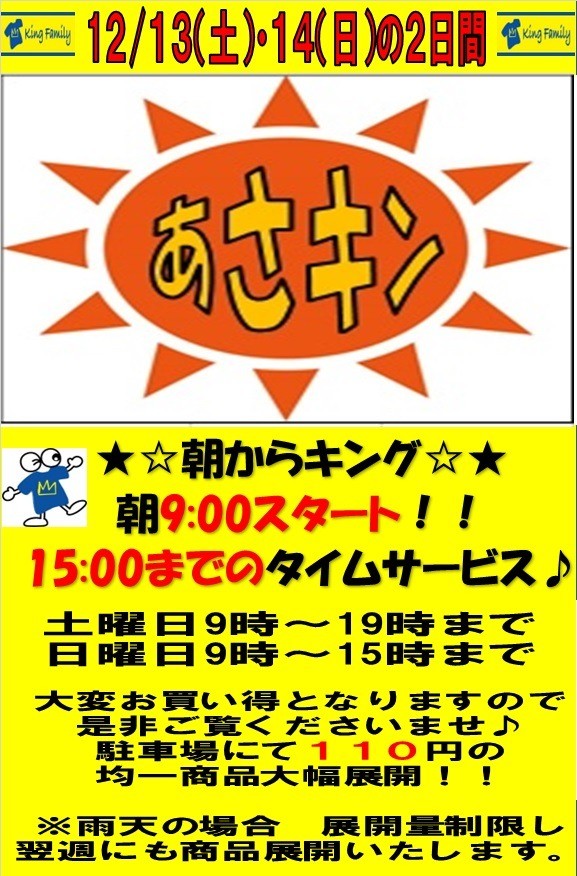 ★週末2日間限定 「あさキン」開催★外売場に110円均一商品大量投入!!