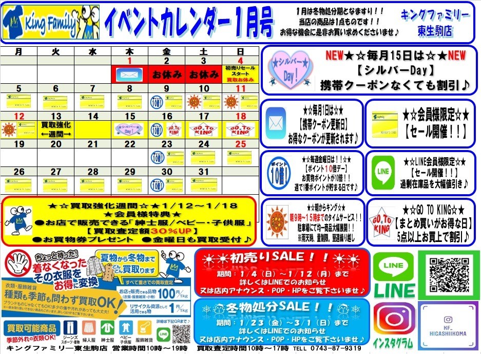 1月イベントカレンダー更新しました♪
