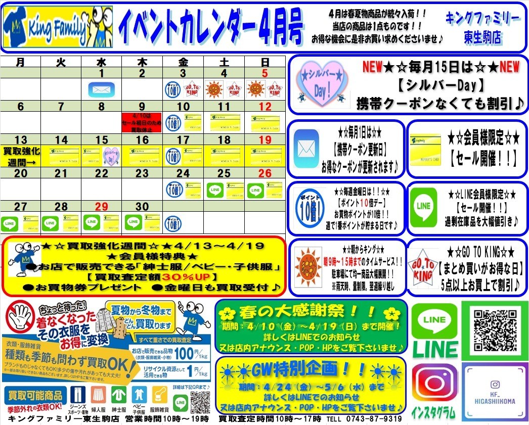 いつもキングファミリー東生駒店をご利用いただきまして誠にありがとうございます。