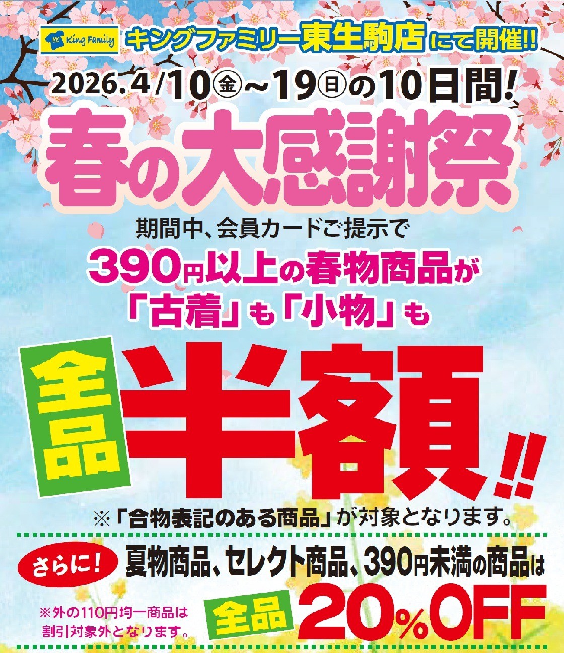 いつもキングファミリー東生駒店をご利用いただきまして誠にありがとうございます。