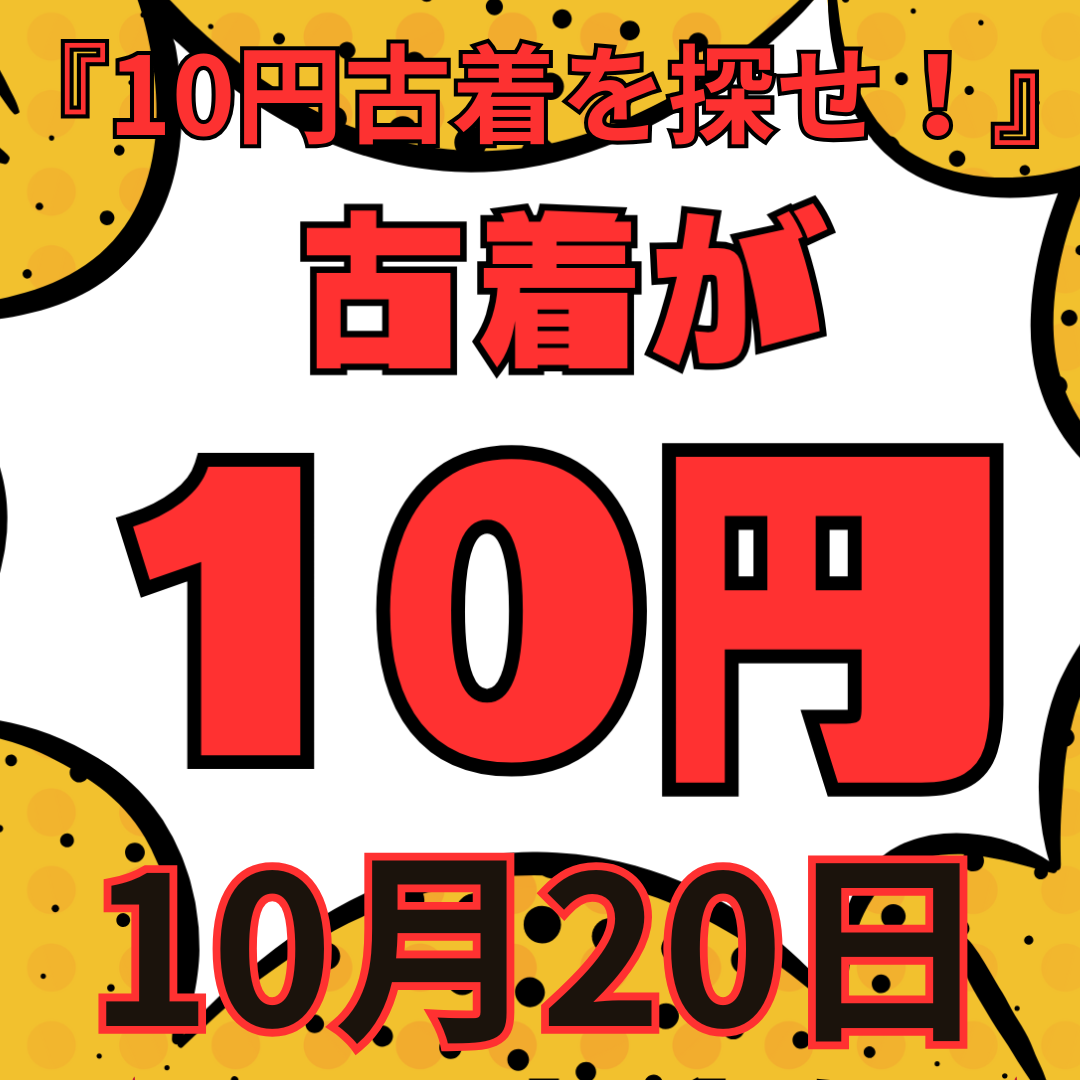 数量限定のため1人2枚まで!期間中、売り場の中に“10円の古着”がいくつか紛れています!商品の値札をご確認ください!運が良ければ激安でお宝ゲット👕✨※レディース、メンズ、ベビー子供服が対象です!