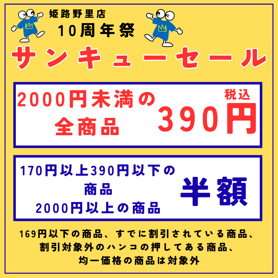 期間中何度でも古着、小物、服飾雑貨、日用品など【2000円未満】の店内商品が税込390円でご購入いただけます。