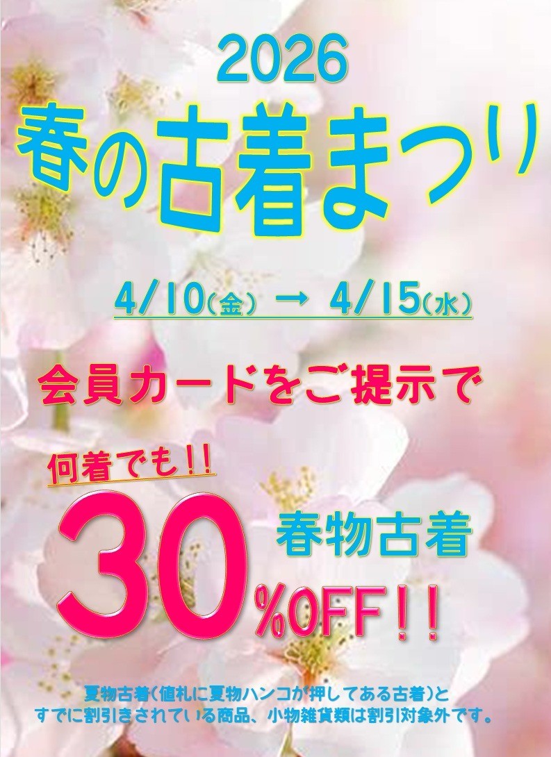 カード会員様限定SALE【春の古着まつり】を開催します。