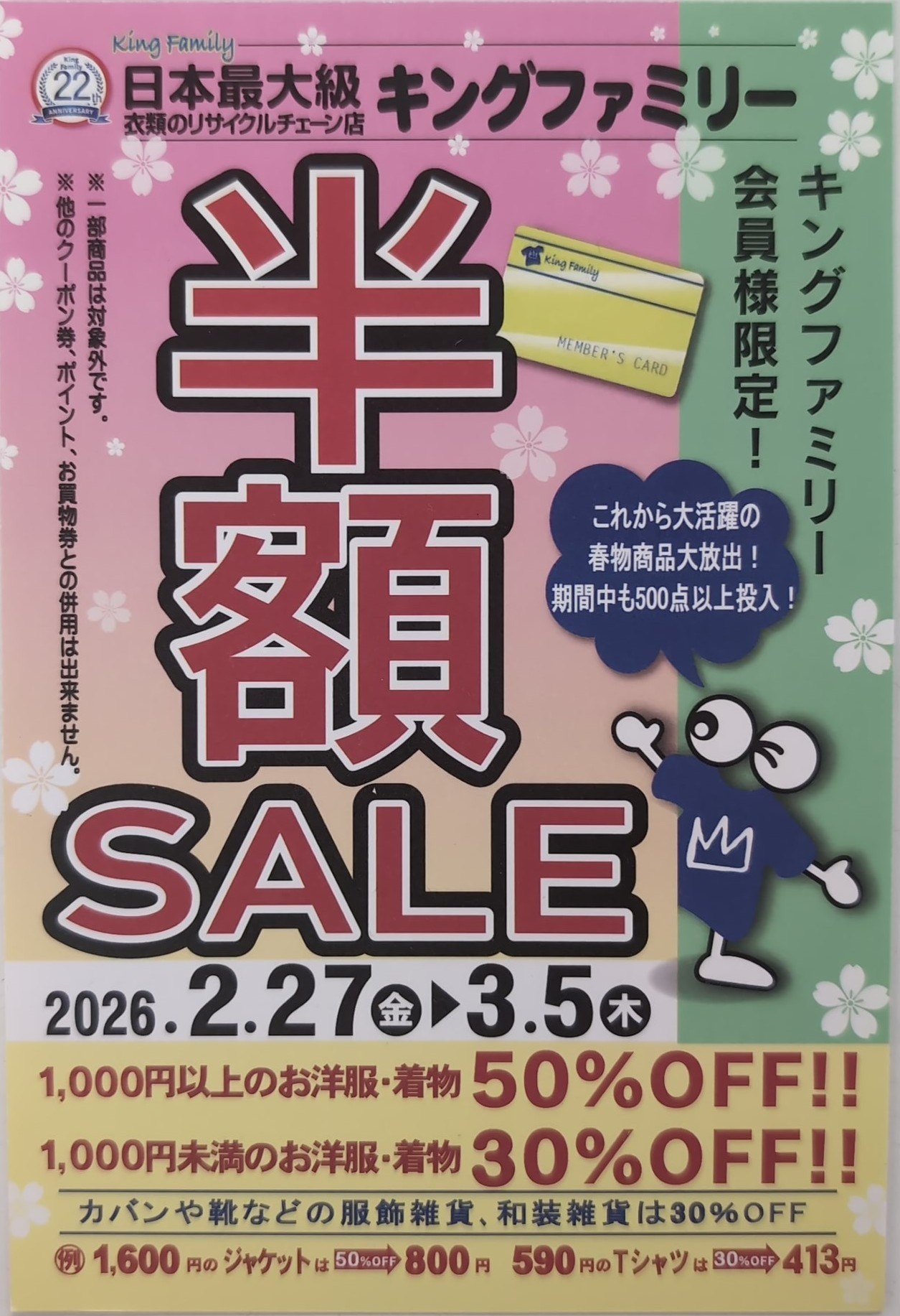 キングファミリー半額セール開催ーー‼️🔔