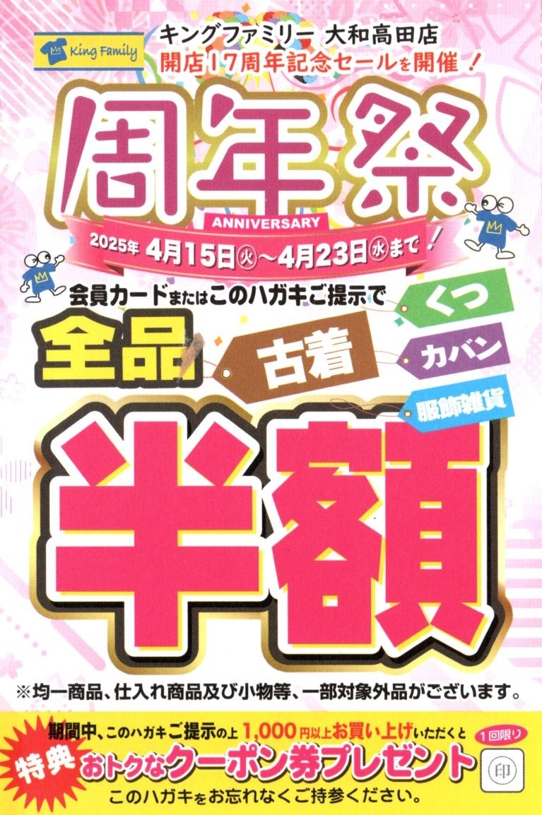 SALE期間中是非お忘れなくお持ち下さい♪皆様キングファミリー大和高田店へGOGO!!